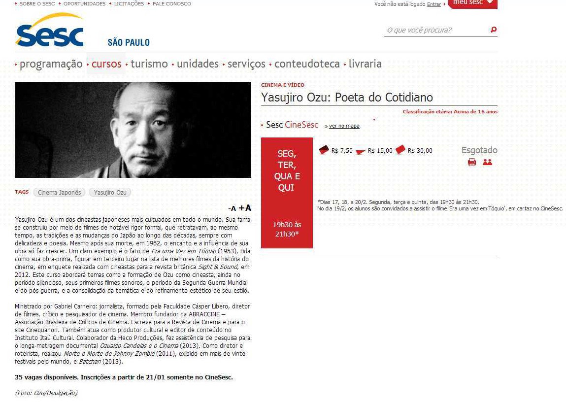 Curso Yasujiro Ozu: Poeta do Cotidiano, Cinesesc, fev/14