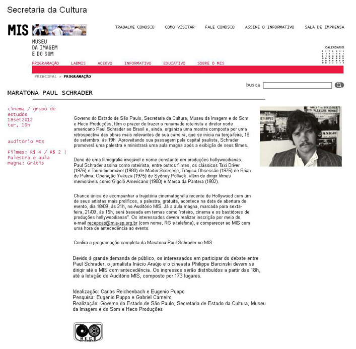 Pesquisa para a Maratona Paul Schrader – MIS/SP – 2012