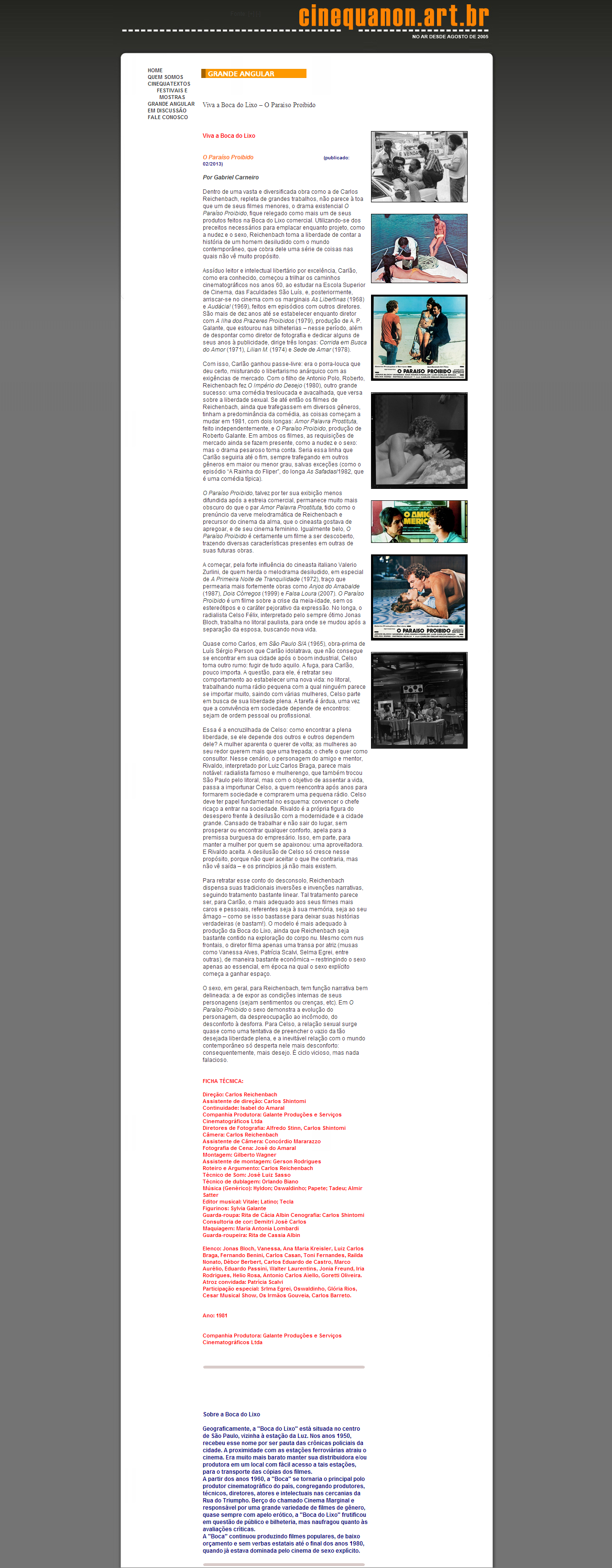O Paraíso Proibido, de Carlos Reichenbach – Cinequanon – fev/2013