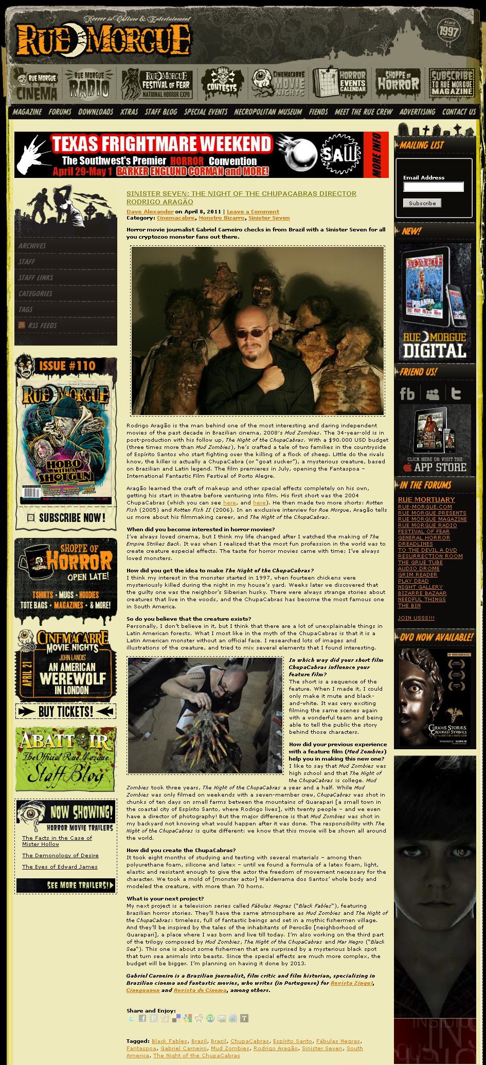 Entrevista com Rodrigo Aragão – Rue Morgue/Canadá – abr/2011